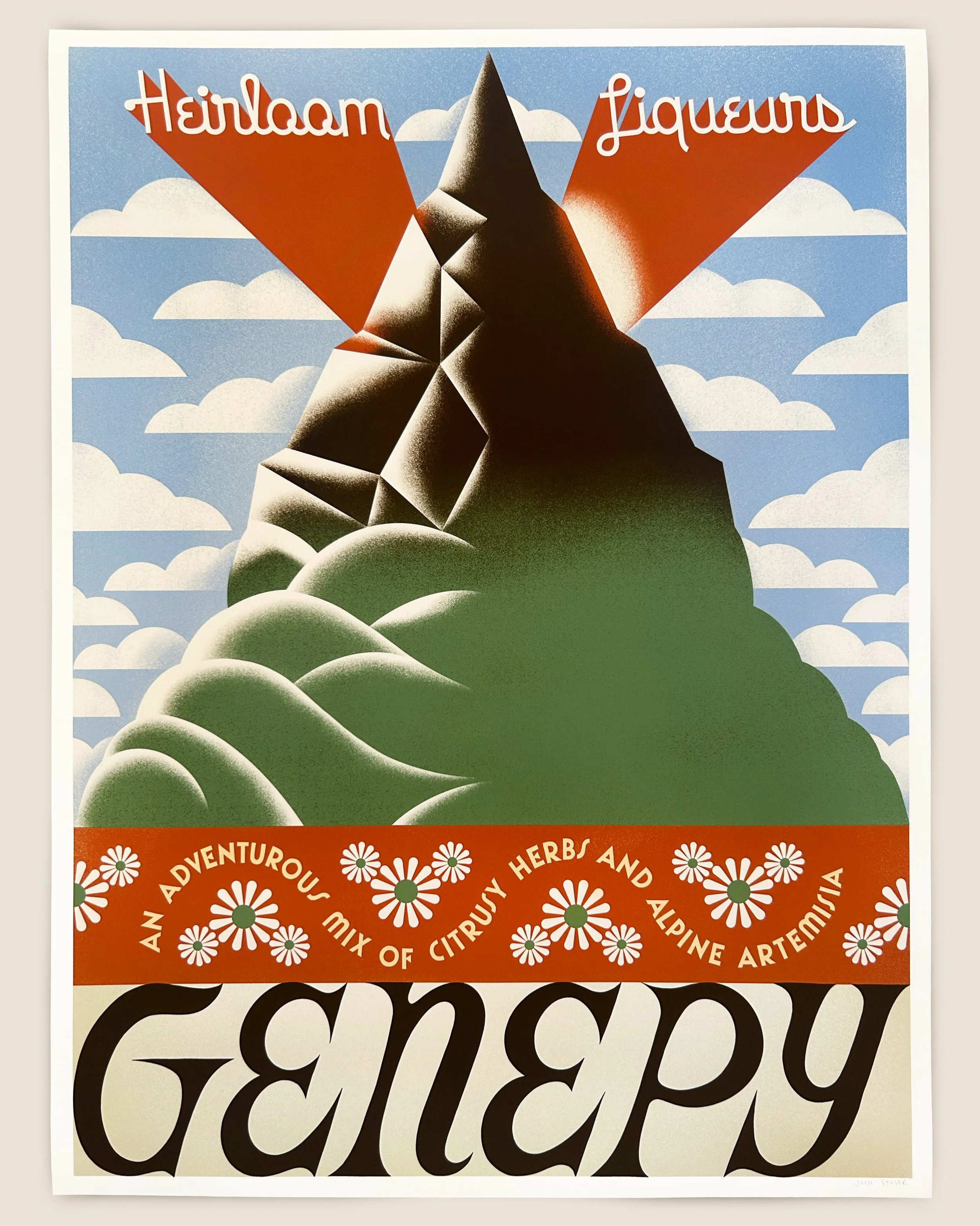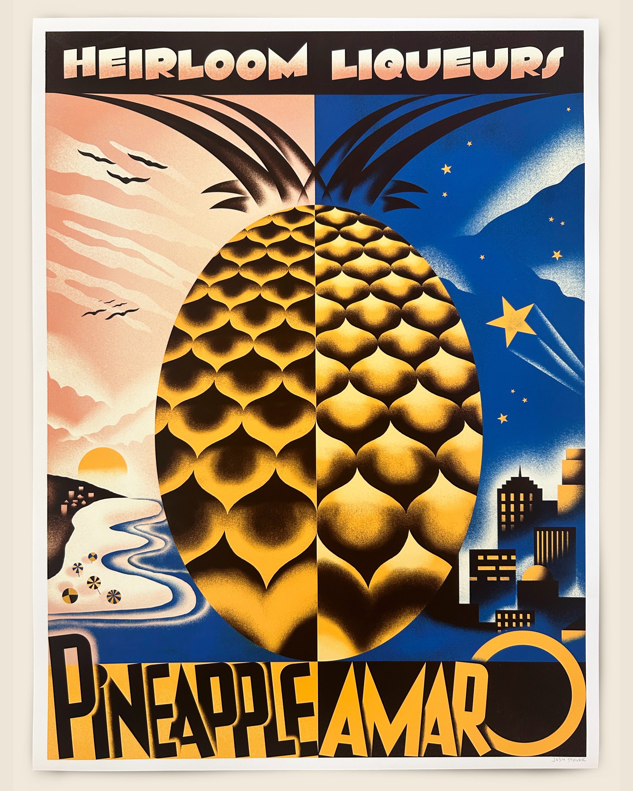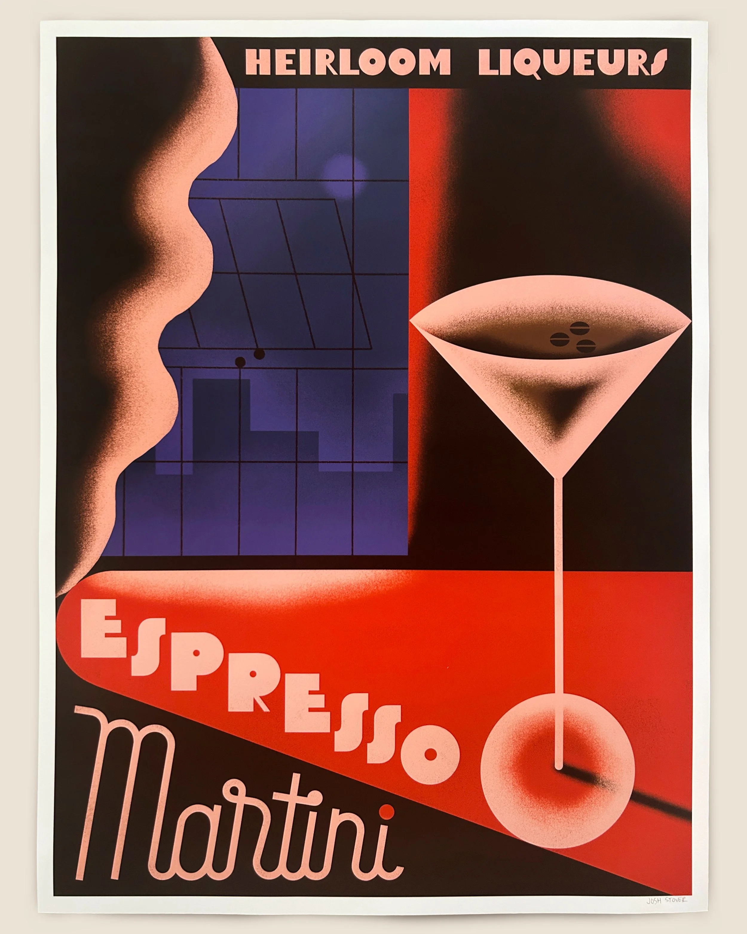 We collaborated with Milwaukie, WI-based Heirloom Liqueurs to create a line of art deco-inspired posters that represent the ingredients and story of five of their liqueurs. We also created simplified designs for each piece that were used for merchandise. Posters and T shirts created from these designs are available for purchase here.